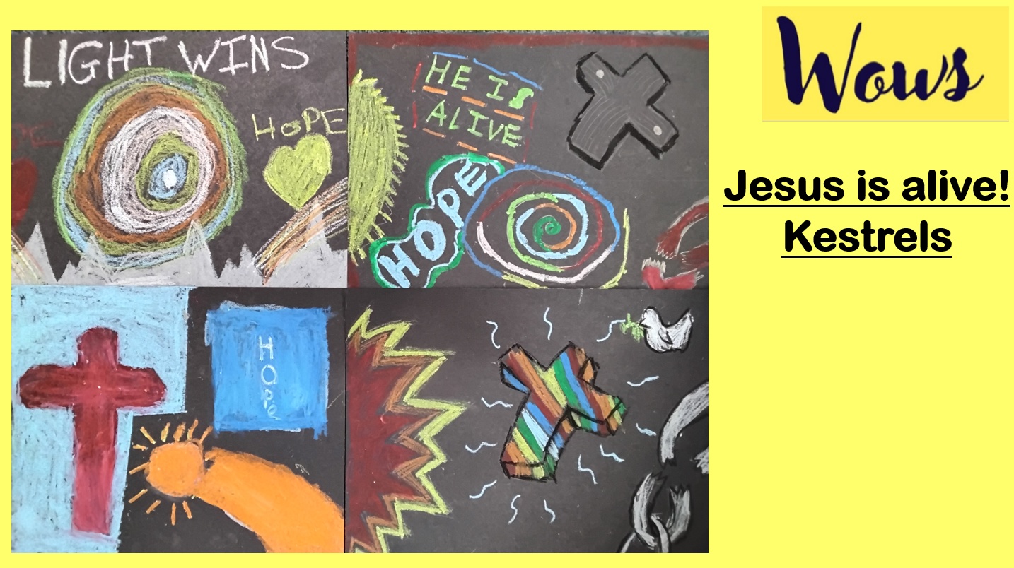 The Easter story broken down into Ows Wows and Nows by each class and service led by KS1